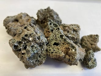木材をバイオマスボイラーで燃焼させた際に炉床で木灰が溶融し多孔質な塊状になったものです。本製品は、接着剤や防腐剤などを一切使っていない天然の木材のみをボイラーで燃焼した際に発生したクリンカアッシュを粒径別にふるい分け・粉砕して製造したリサイクル製品です。